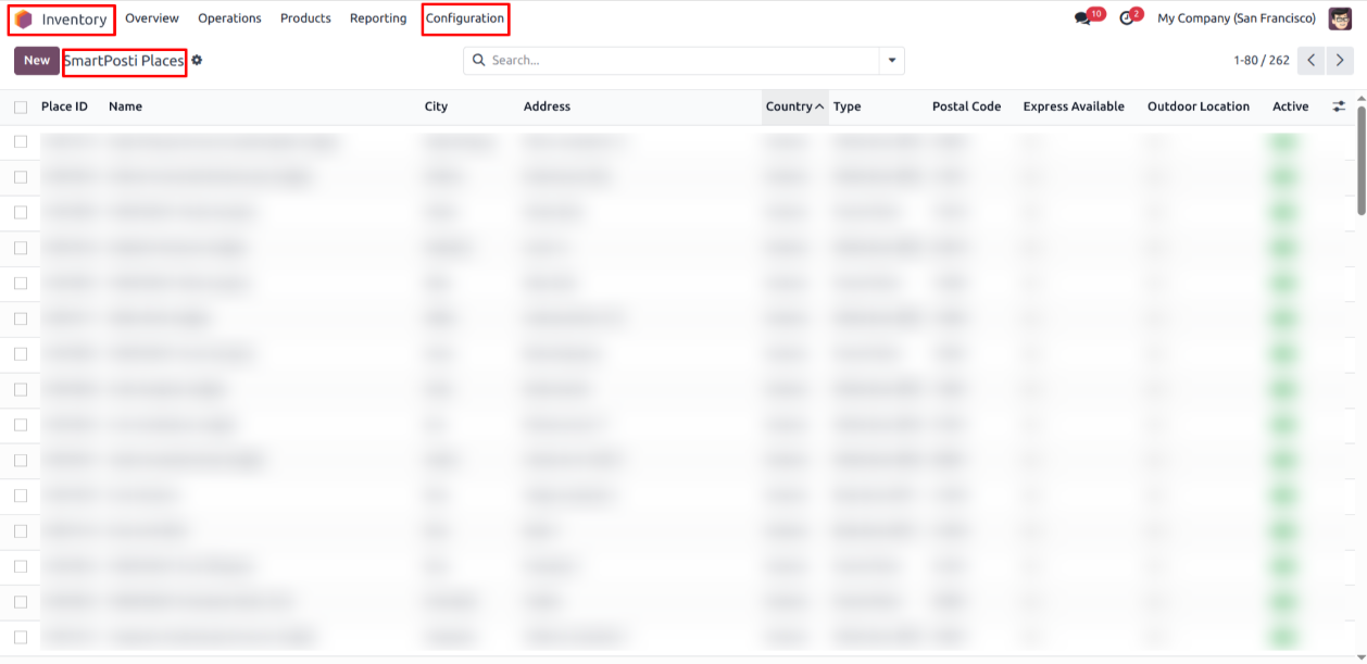 - Navigate to Inventory >> Configuration >> Smartposti Places there user will see all fetched smartposti places synced.